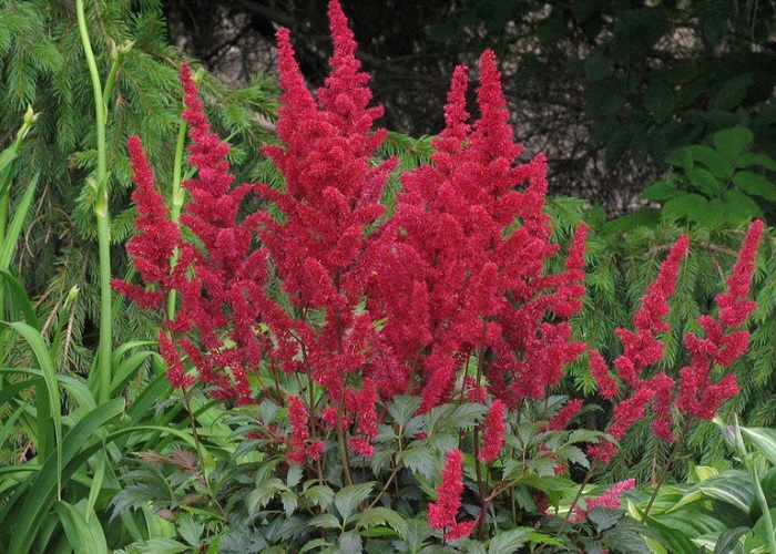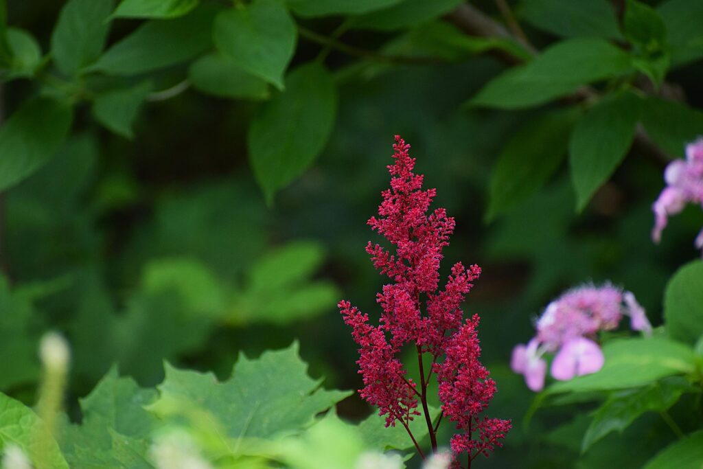 Astilby (Astilbe) pochádzajú z Ázie a sú známe tým, že dokážu kvitnúť aj v tieni. ‘BURGUNDY RED’ patrí medzi najvýraznejšie farebné kultivary.