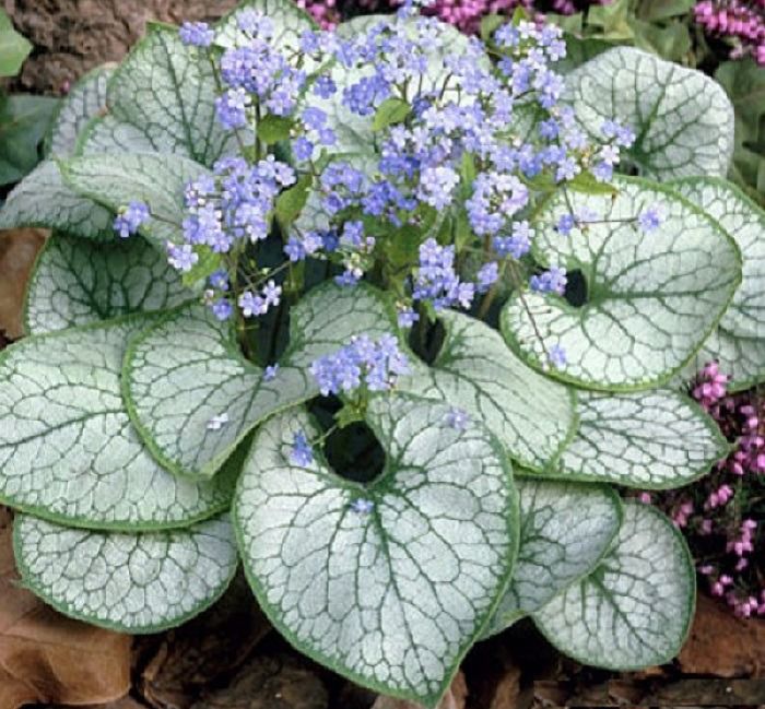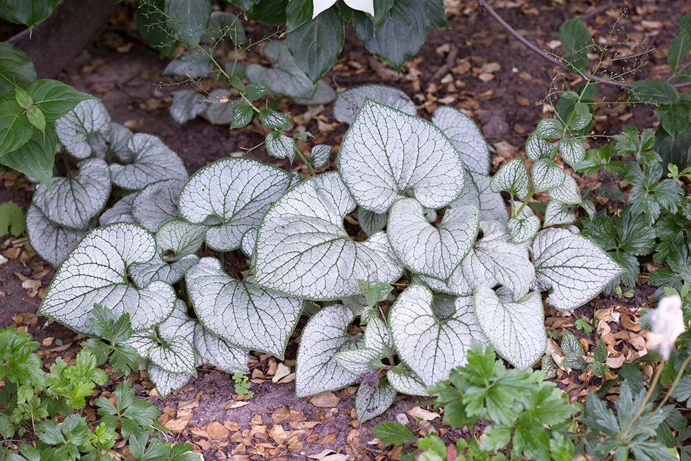 Brunera je hľuzovitá trvalka s nápadnými, mierne chlĺpkovitými, srdcovitými listami. Kultivar Silver Heart má listy veľké, strieborné so zeleným okrajom a žilkovaním. V apríli a máji vykvitajú stonky s mnohými drobnými, blankytne modrými kvetmi pripomínajúcimi nezábudky.