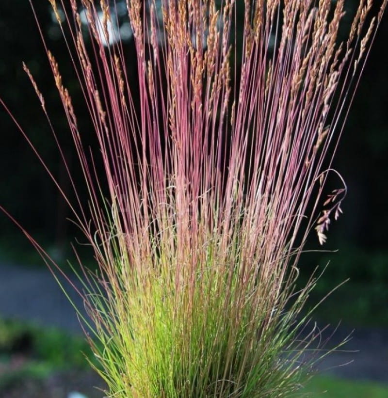 Okrasná, vždyzelená a vytrvalá tráva, ktorá tvorí husté trsy, listy má ihlicovitého tvaru dlhé 20 cm, previsnuté, jemné, modré až svetlo zelené, niekedy tmavo zelenej až striebornej farby. Kvitne koncom jari, začiatkom leta riedkymi červenými latami dlhými až 40 cm.