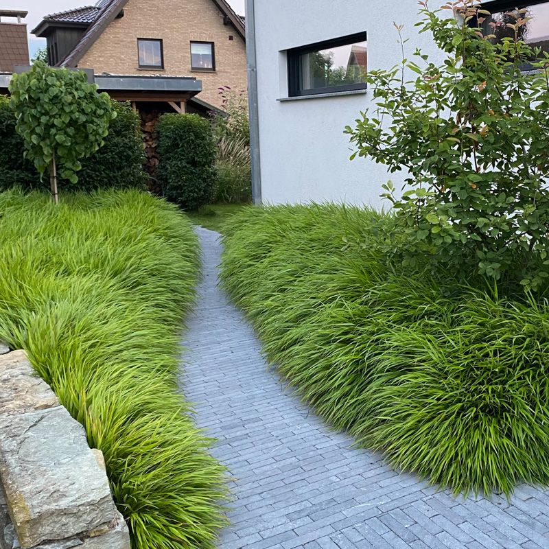 Ak chcete do záhrady mäkkosť, pohyb a zen atmosféru, Hakonechloa macra je presne ten typ. Táto japonská lesná tráva vytvára husté, oblúkovito previsnuté trsy, ktoré pôsobia jemne a prirodzene. V tienistých zákutiach doslova svieti sviežou zelenou farbou. A🌿