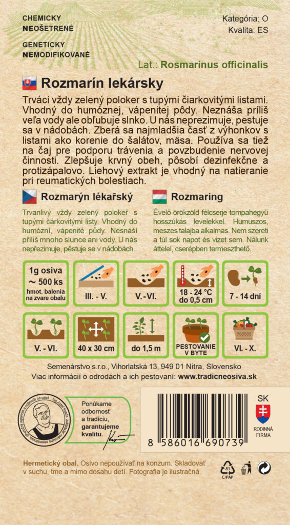Trváci vždy zelený poloker s tupými čiarkovitými listami. Vhodný do humóznej, vápenitej pôdy. Neznáša príliš veľa vody ale obľubuje slnko. U nás neprezimuje, pestuje sa v nádobách. Zberá sa najmladšia časť z výhonkov s listami ako korenie do šalátov, mäsa. Používa sa tiež na čaj pre podporu trávenia a povzbudenie nervovej činnosti. Zlepšuje krvný obeh, pôsobí dezinfekčne a protizápalovo. Liehový extrakt je vhodný na natieranie pri reumatických bolestiach.